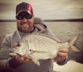Chris was pretty disheartened after losing a good fish, but after raiding my tackle box…again… turning the boat around and heading back upstream he was back in the water and onto 2 fish in quick succession which lifted his spirits.