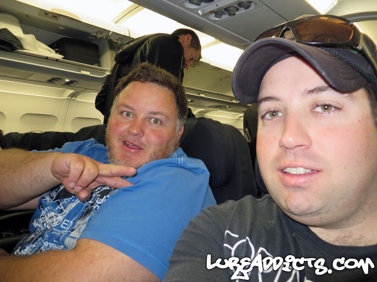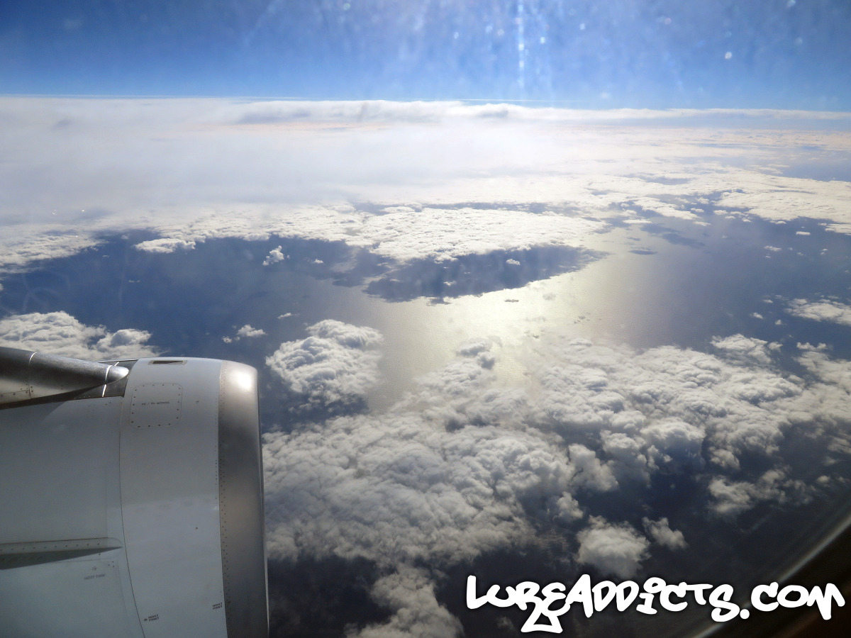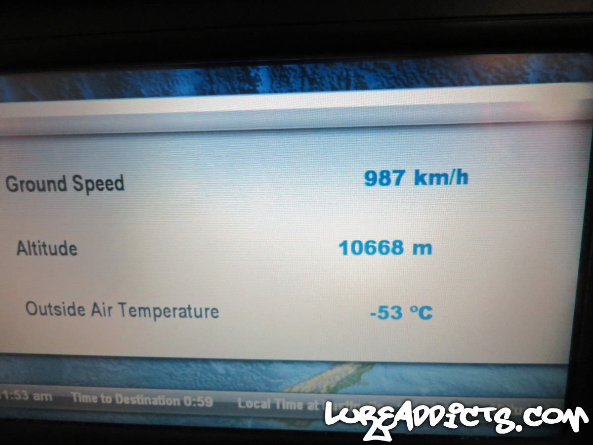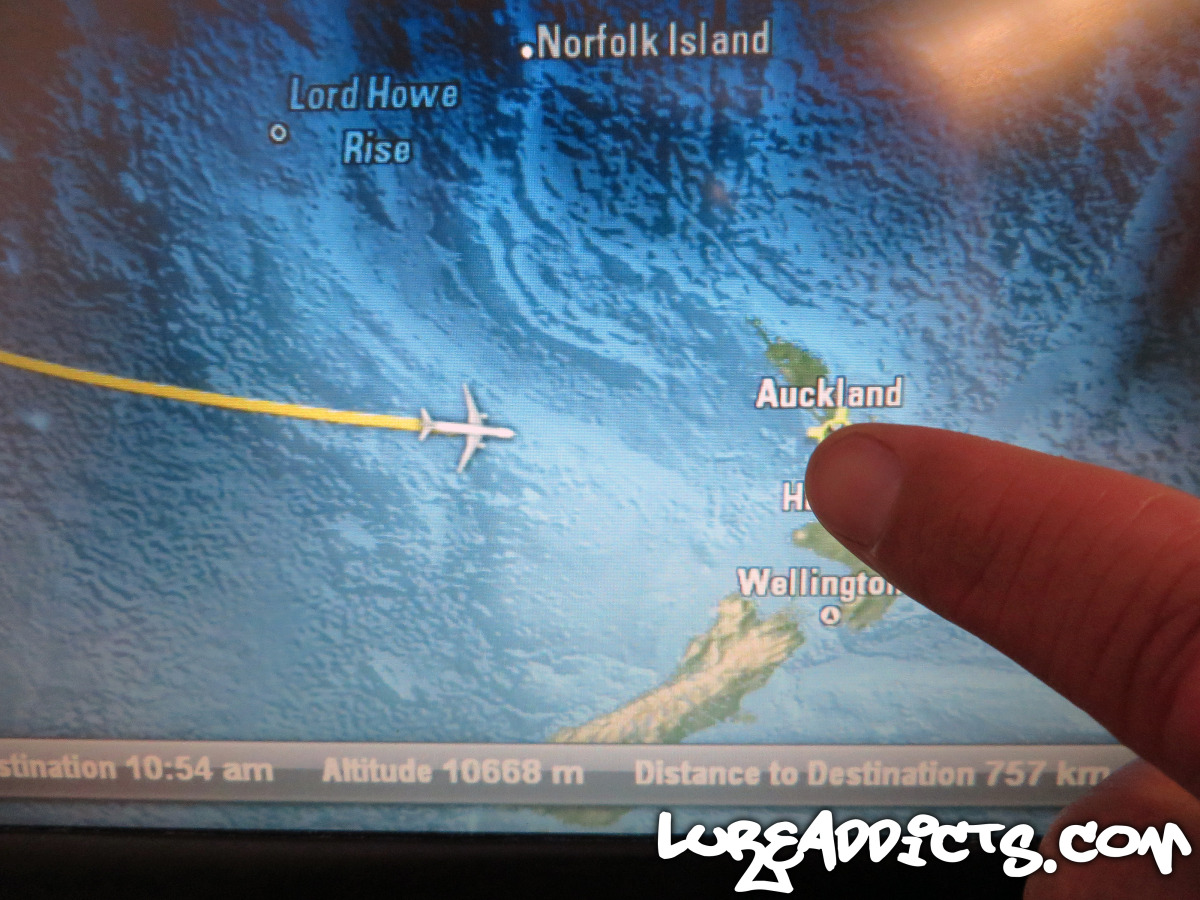 A quick trip through duty-free for our 1L bottles of rum and we were in our seats and awaiting take off. A quick check of my phone before phones were to be off and an email had come through from Rob Fort, alerting us to a delay the Melbourne boys from AFN’s Yak Fisher Magazine were experiencing as their flight was running 3 hours late. Wes nodded off on the tarmac but was rudely awoken by the thrust of the jet engines as we took flight and heading directly east. We seemed to be making good time with the tail wind and found the perfect inflight entertainment in the way of a show called “Rod and Rug Sack” to hype us up.